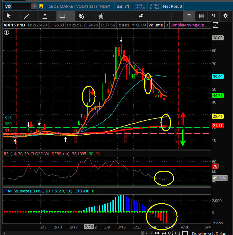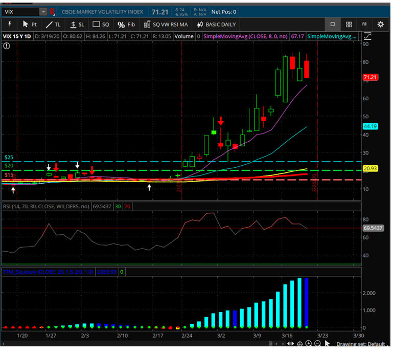 If this virus lingers and death tolls compound, especially in the USA, the markets can and will continue to suffer; however, there is the Fed QE buy programs that have started kicking in to slow down the volatility…or so it would seem; therefore, we need to keep an eye on the VIX to confirm that assumption and trade for small gains.