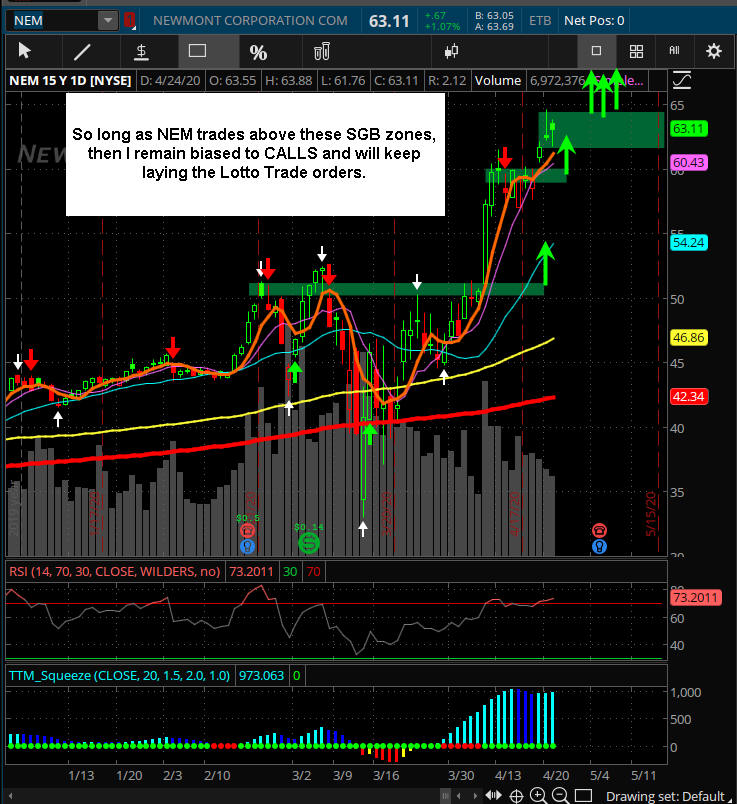 NEM actually went parabolic on Friday; and so long as this stock holds above the SGB zone at $51.00; I will be on the hunt for Lotto Trades to the CALL side.