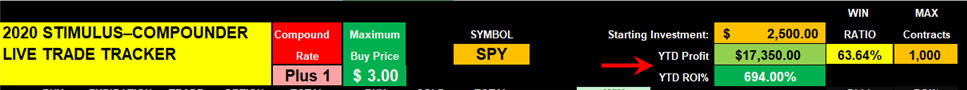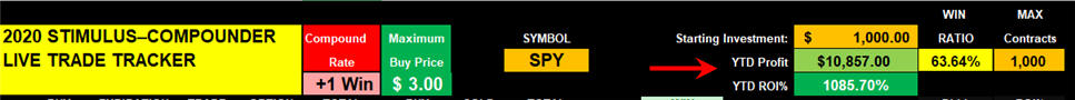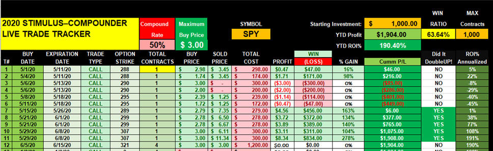 CONGRATULATIONS!  If you have been trading the STIMULUS–COMPOUNDER strategy from the beginning on 5/1/2020 then you have made AMAZING PROFITS UP!!!!!