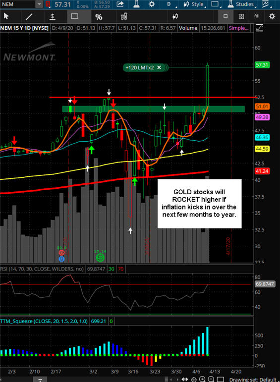 What should you do to abate the damage inflation can bring your way? Investing in "real assets" like GOLD and SILVER have always been an excellent hedge against rampant inflation; and that is why I am going to start focusing on Lotto Trades with: GLD and NEM.