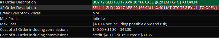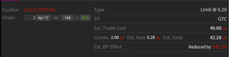 GLD Last Price = 158.69 + 5% = $166 Strike Price.