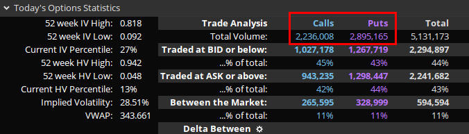 Here are some daily snapshots of option trading volume for the SPY: