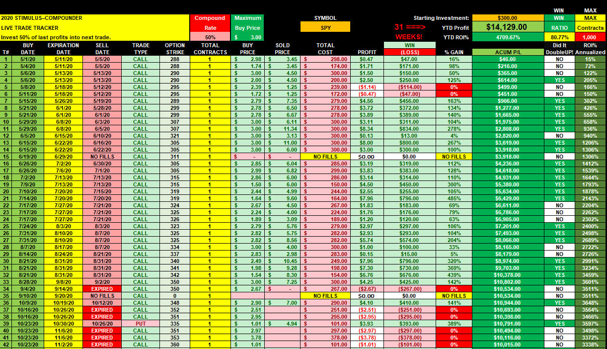 Here is the FULL potential if you really want to press up on the compounding and reinvest 50% of accumulated profits each week: