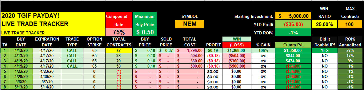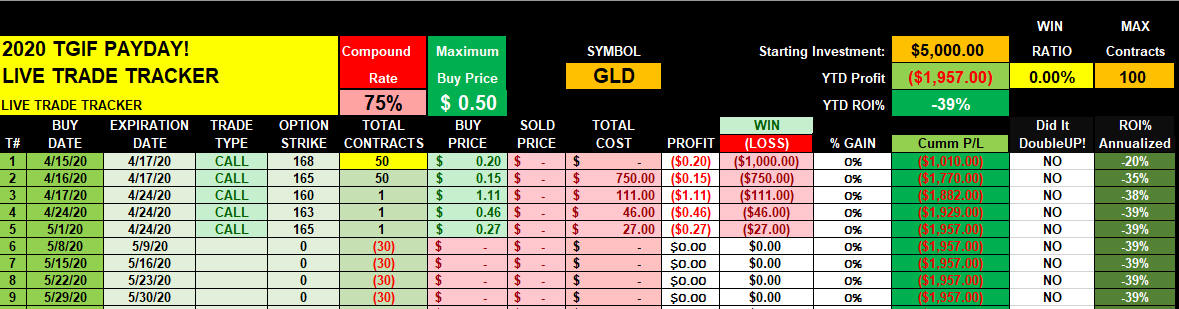 I fully expect continued volatility in GOLD, and I am not looking for these trades to be short term; however, as I collect winners, I will be compounding at a very aggressive 75%.