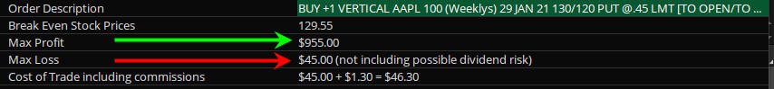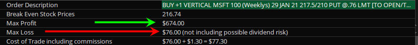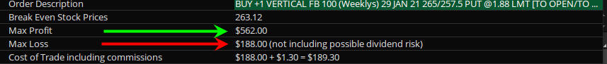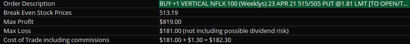 PUT (1.85 DEBIT) MAX profit is $819.00 (440%) if