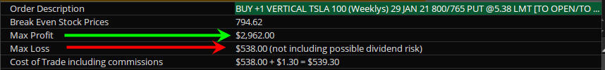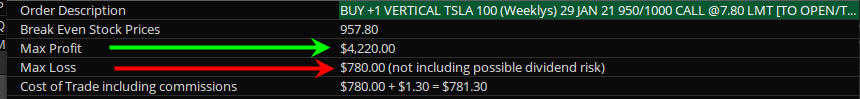 Profit up to $4,220.00 (540%) if TSLA hits the $1,000