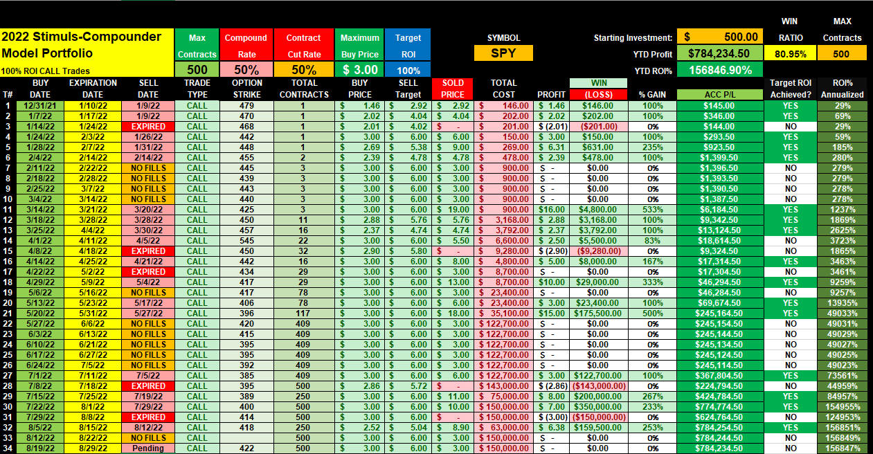 These are the charts for each weeks 100% ROI CALL Stimulus-Compounder trades so you can see that the formula works and you could have been filled!