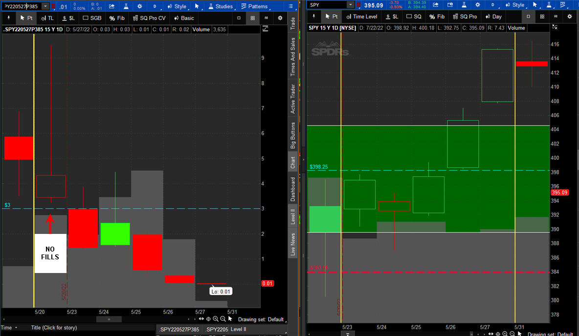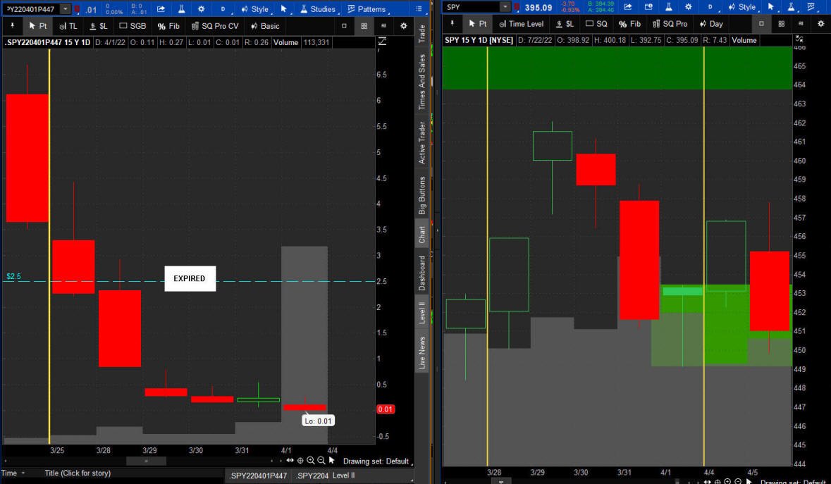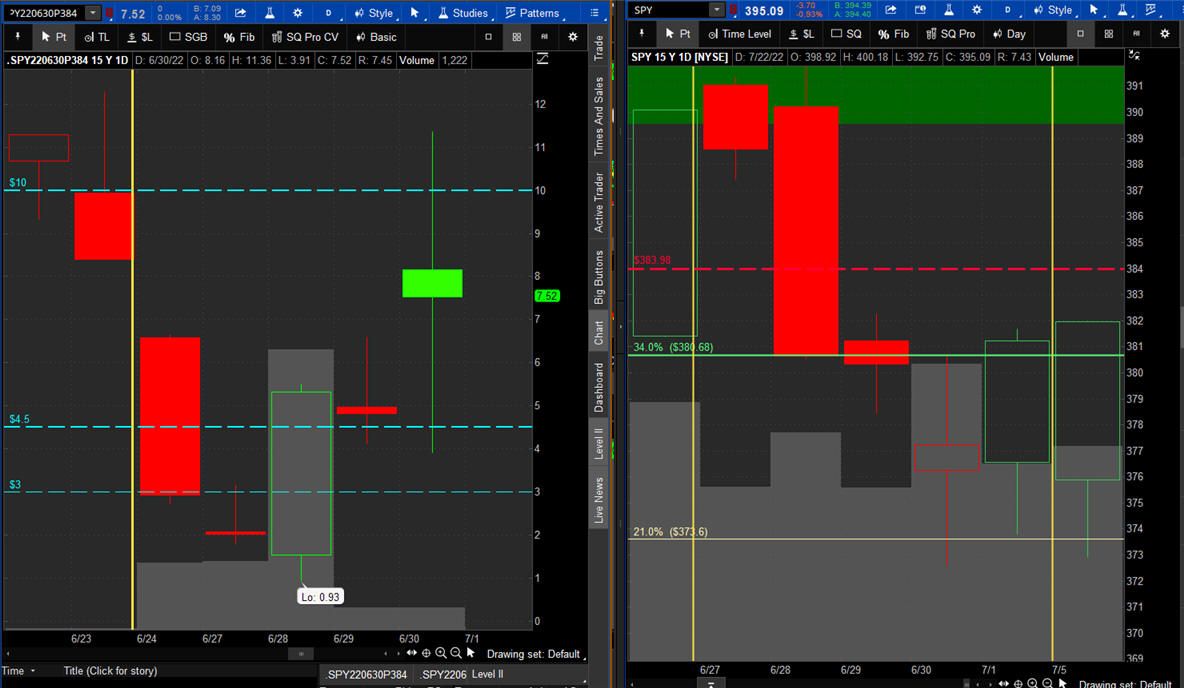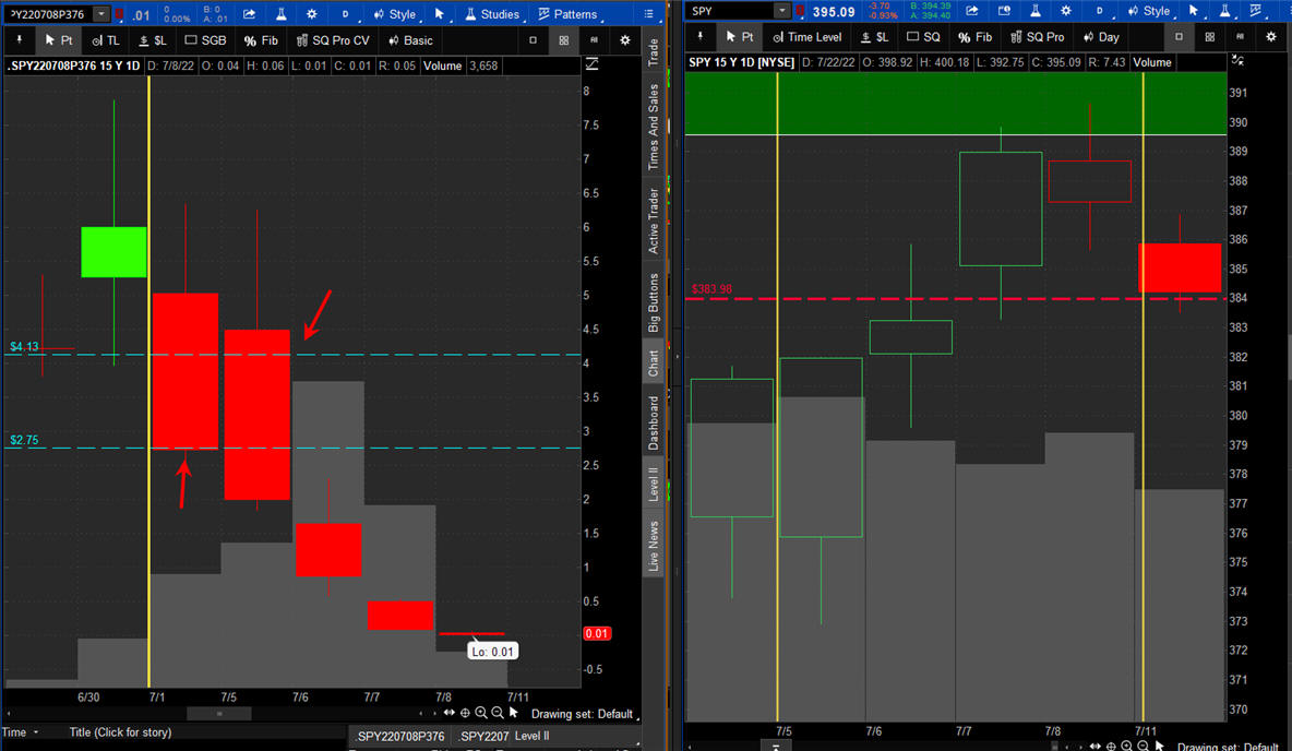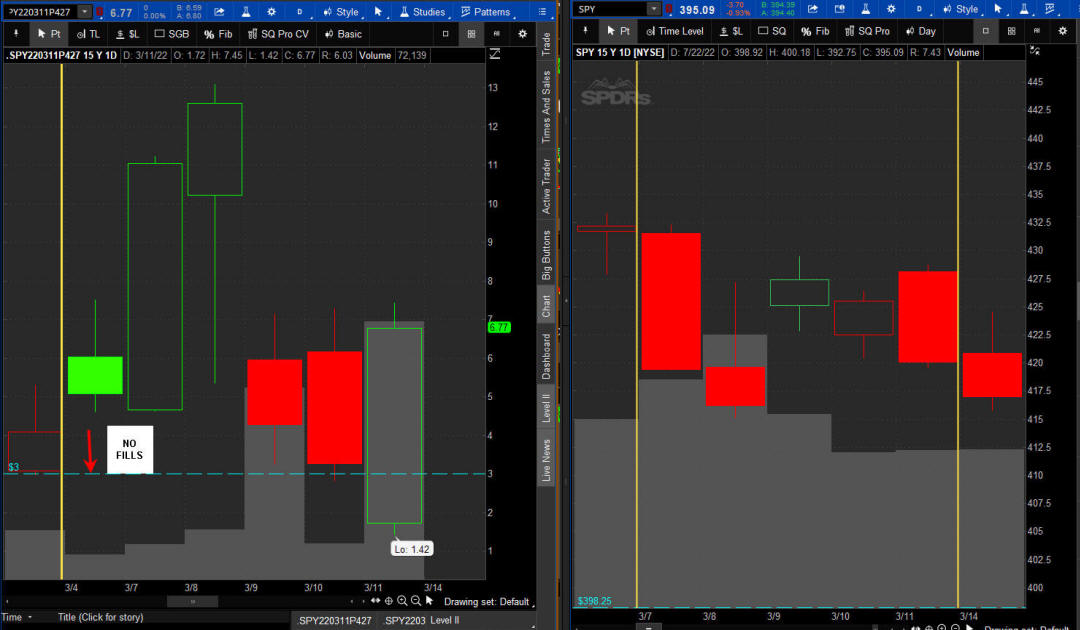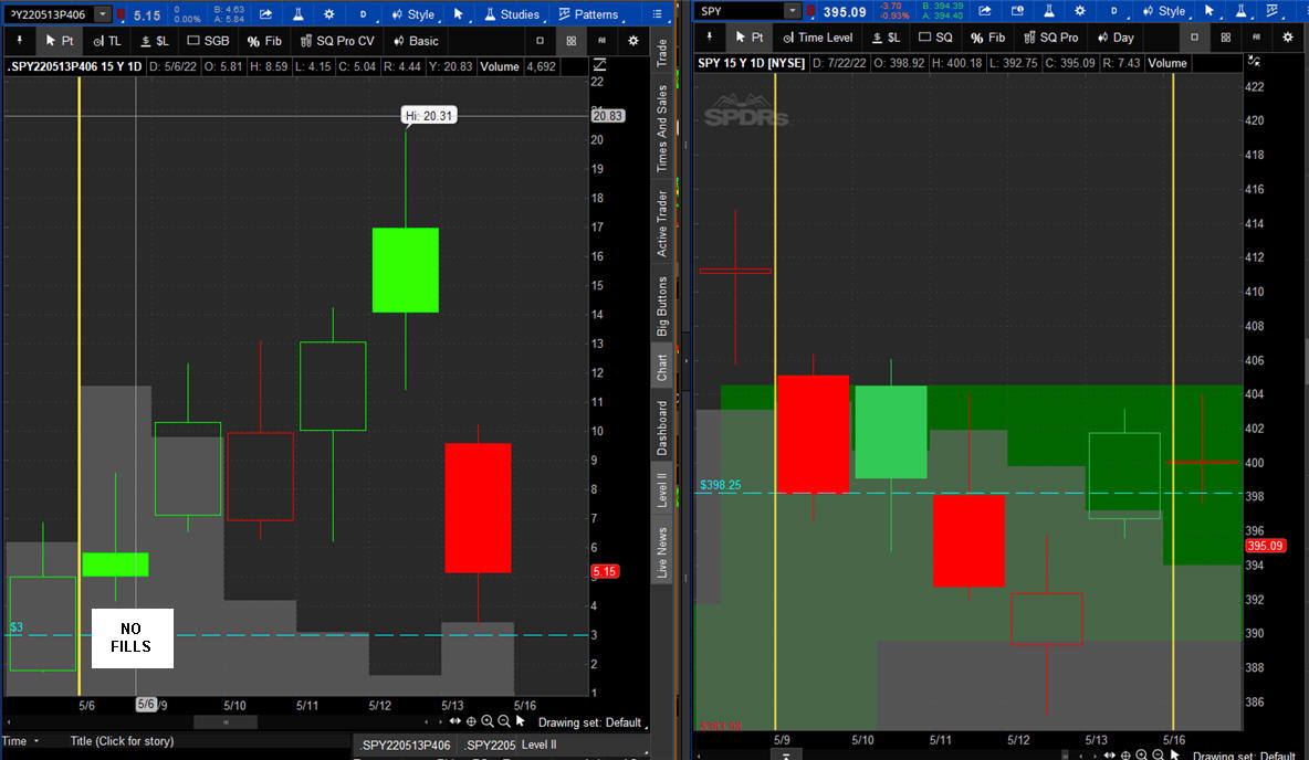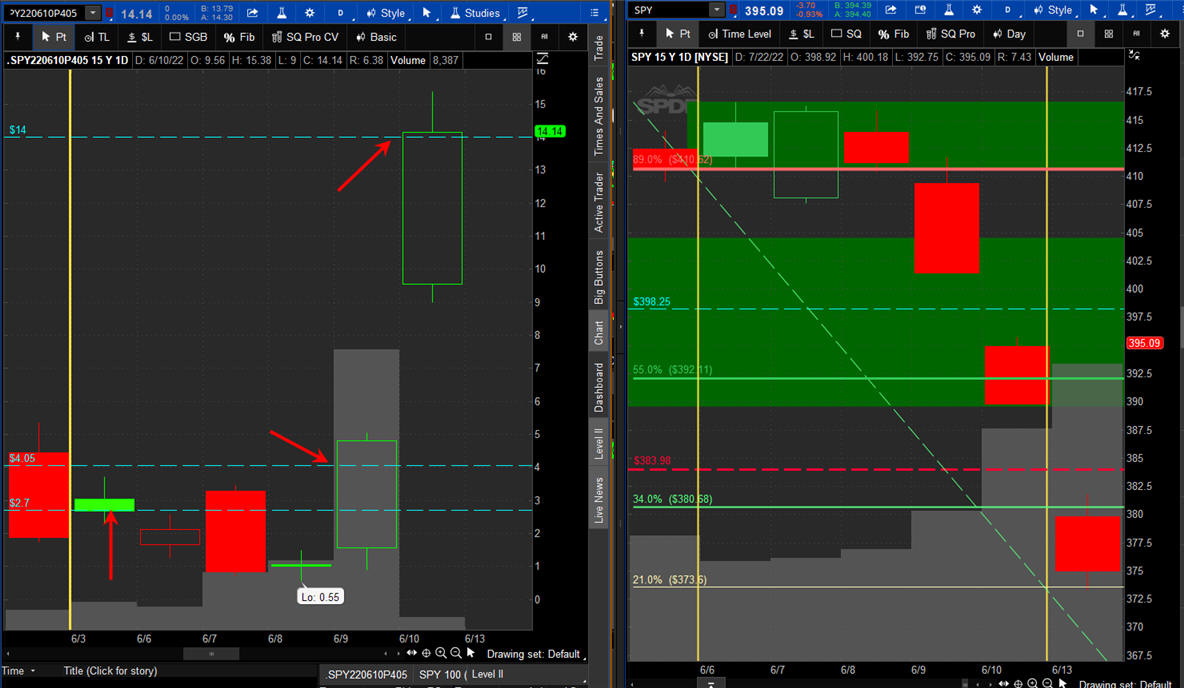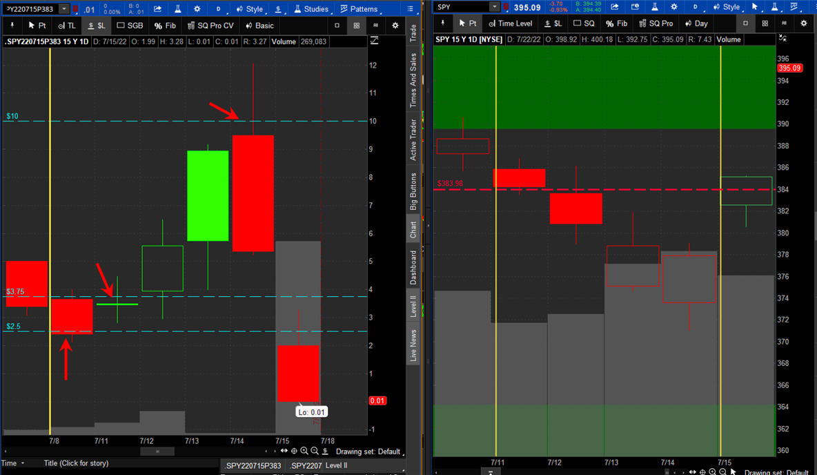 The left chart is the Option and the right chart is the SPY for the week.