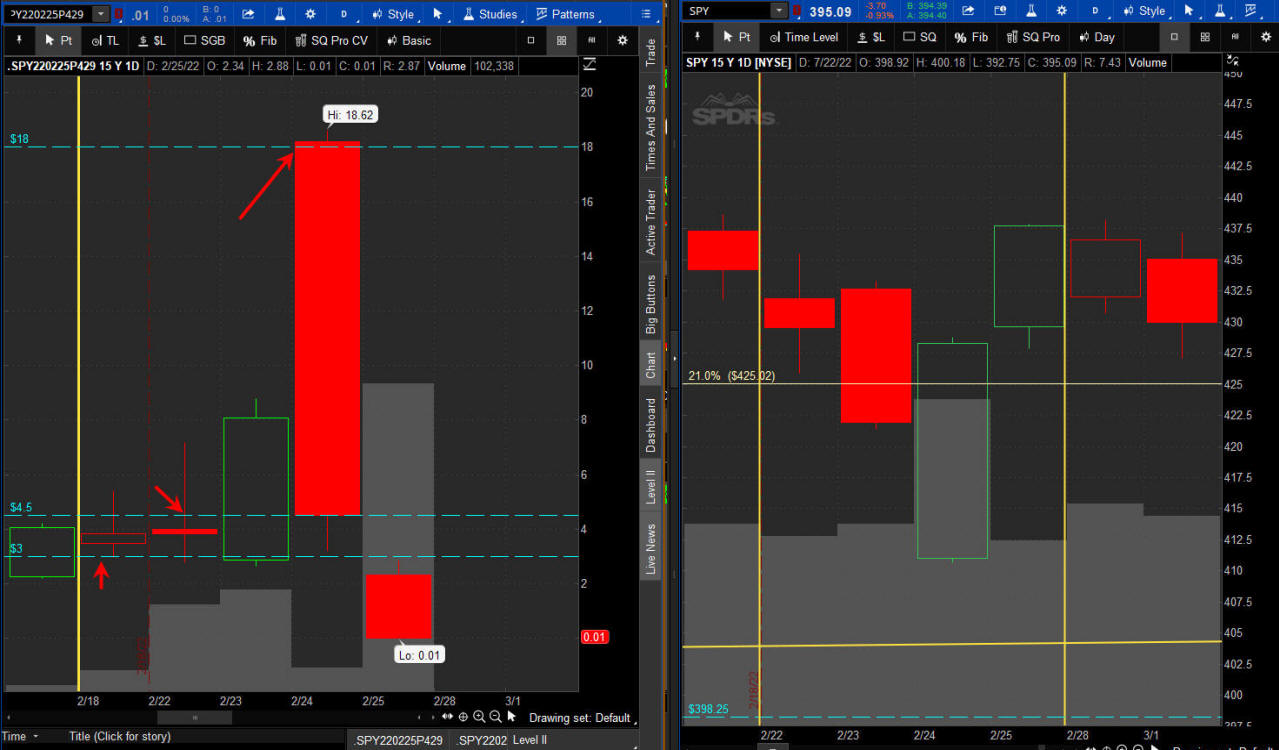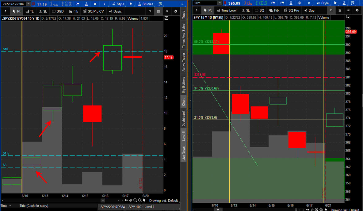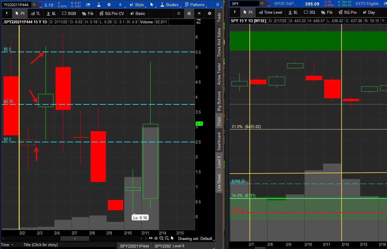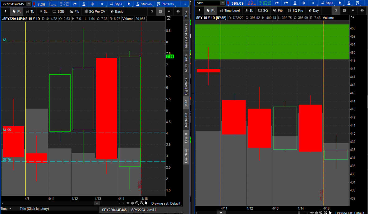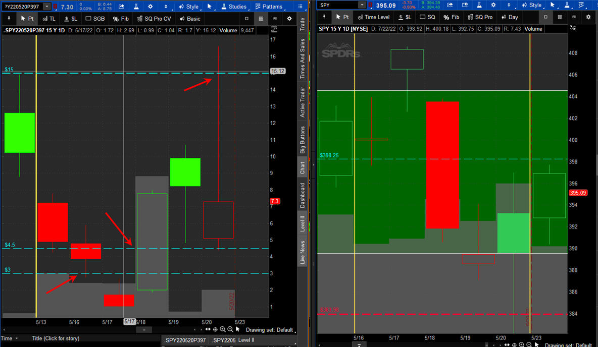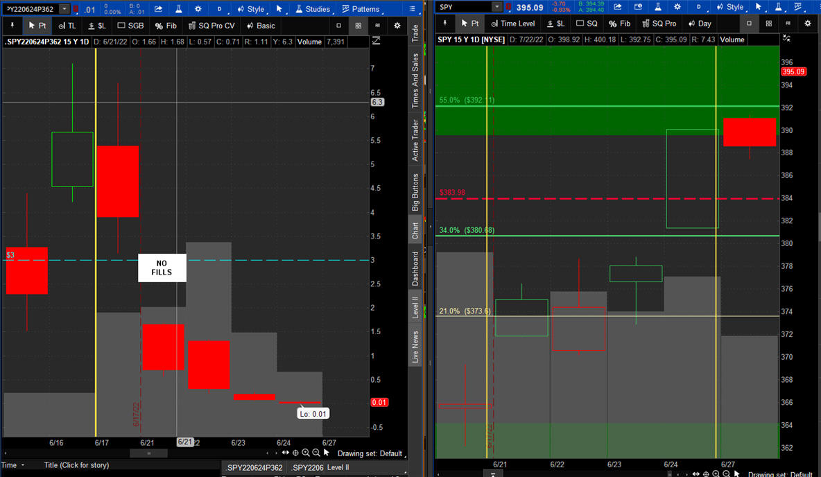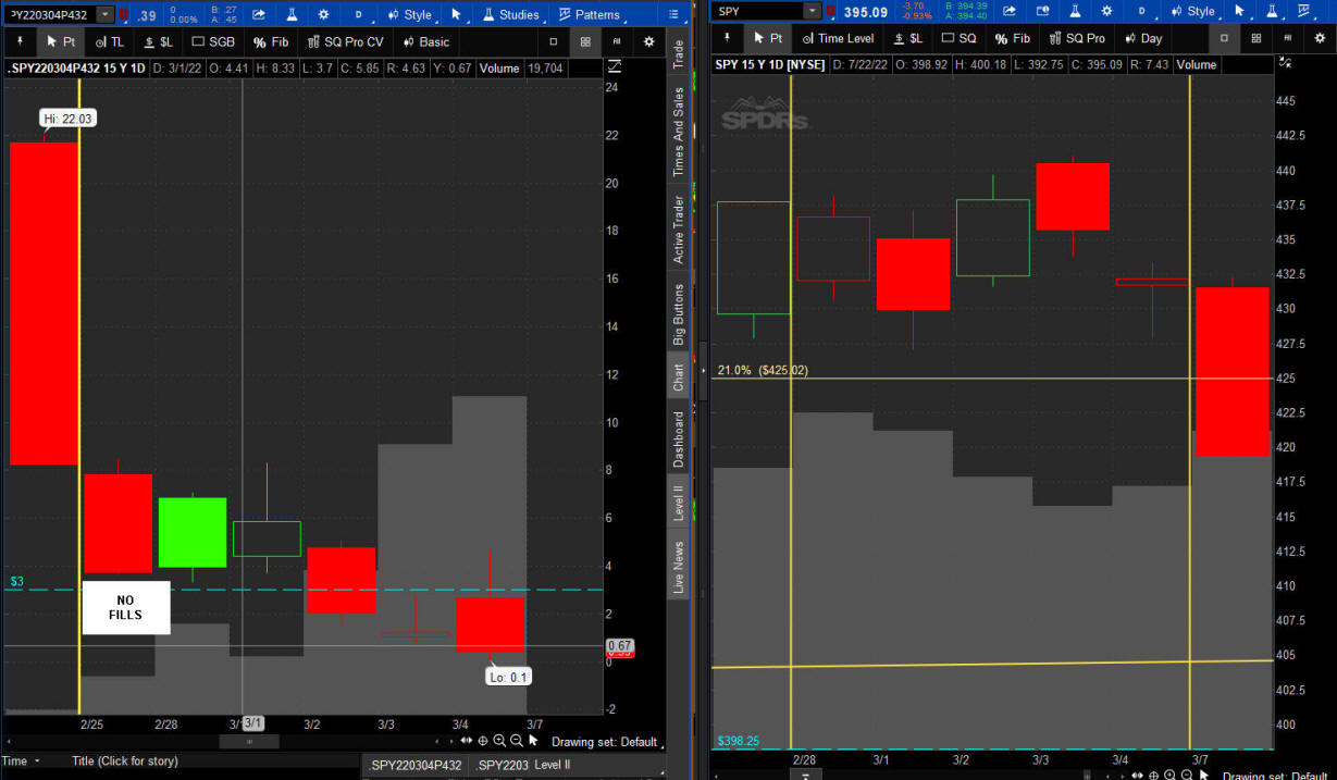 The left chart is the Option and the right chart is the SPY for the week.