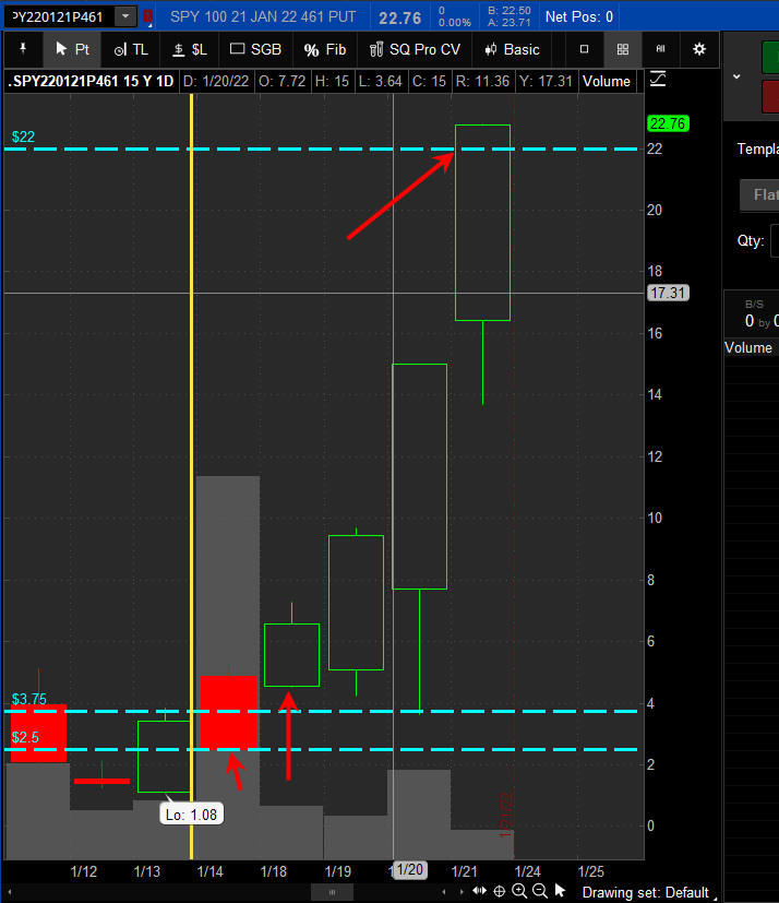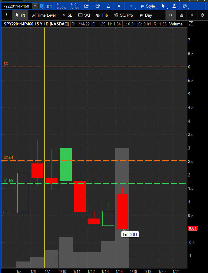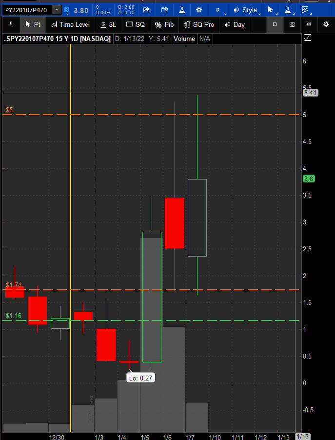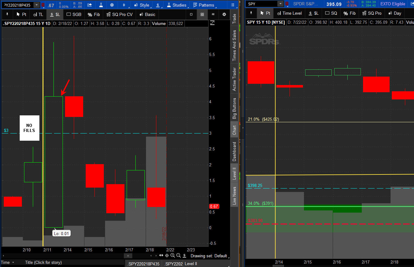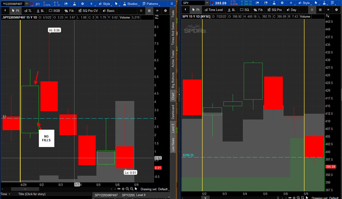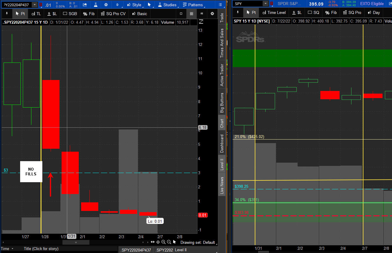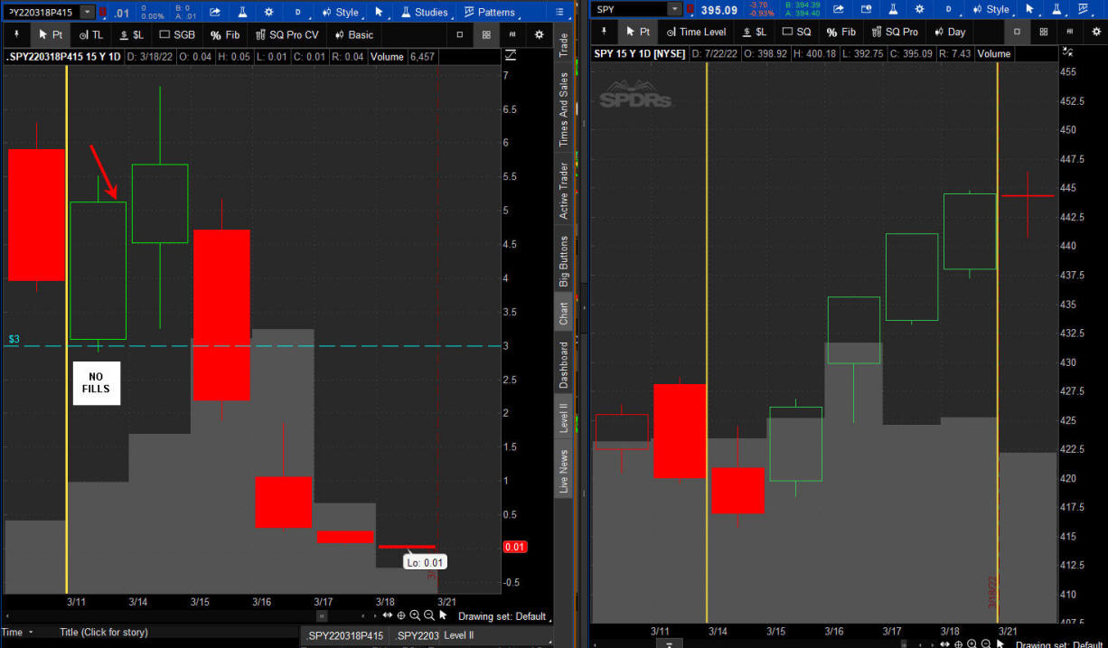 The left chart is the Option and the right chart is the SPY for the week.