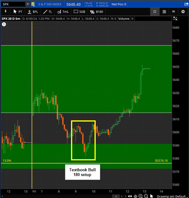 AUG 30, 2024 SPX - Open 5612.74 / High 5651.37 / Lo 5581.79 / Close 5648.40