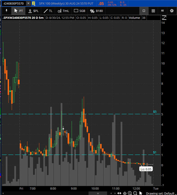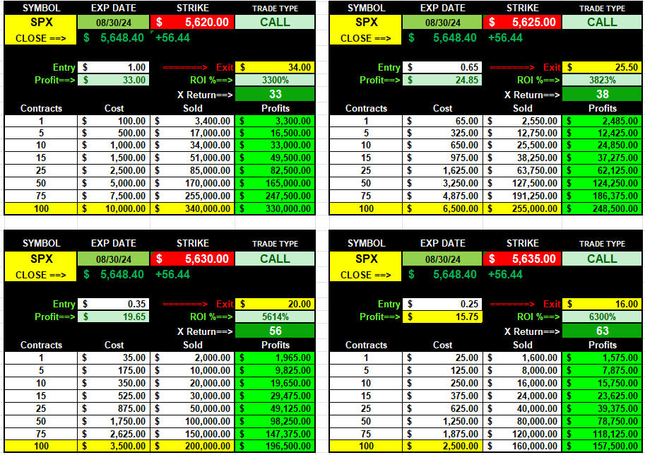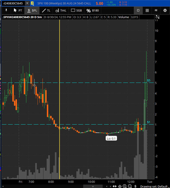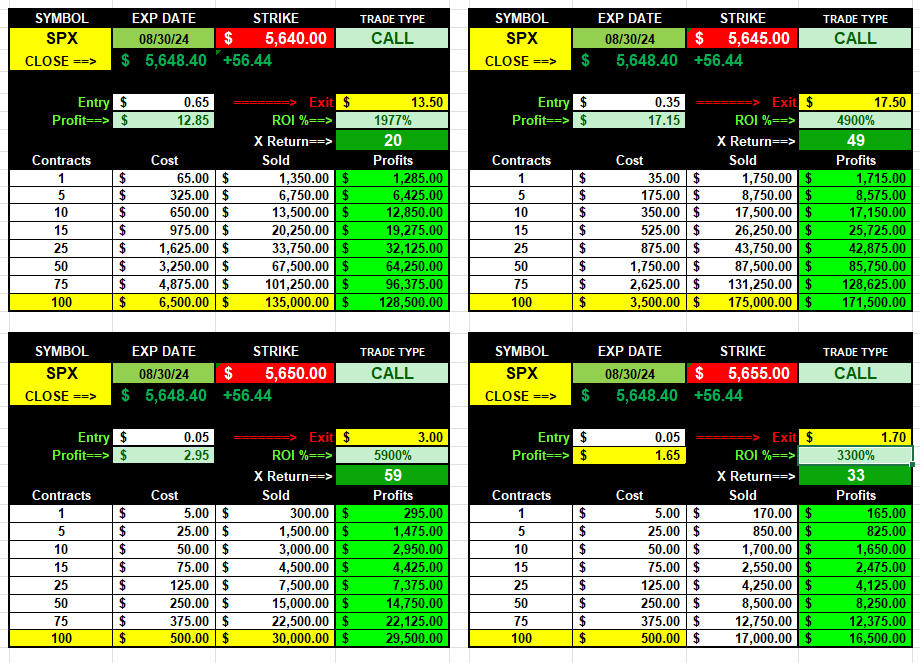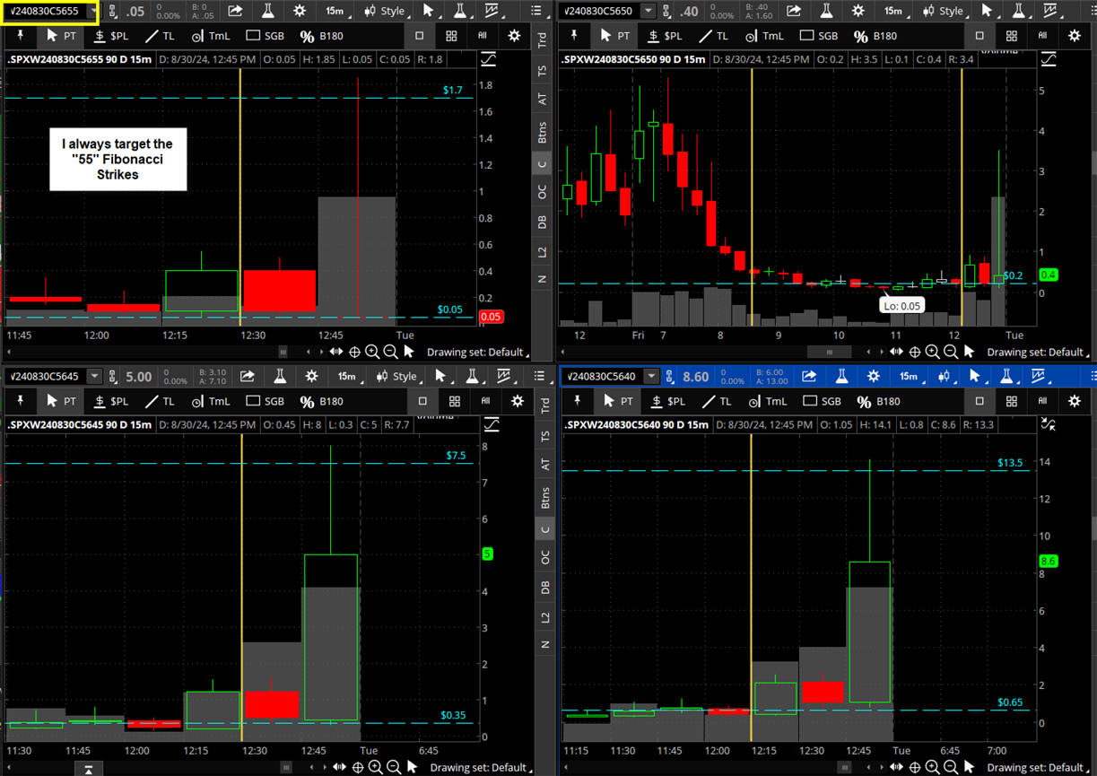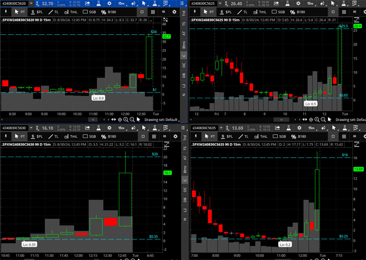 8-30-24 -5645 C and 5570 P both hit the target $1 opening Formula winner