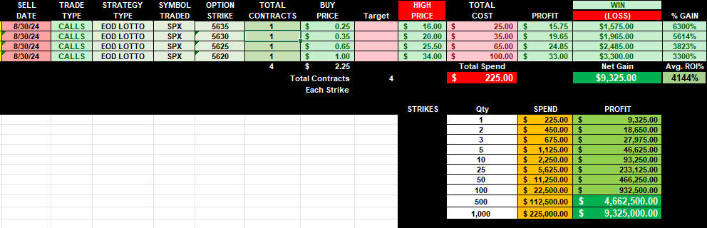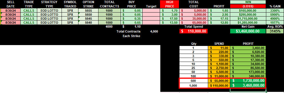 8-30-24 - EOD Lotto Trades - MOBY DICK JACKPOTS today on the CALL side!