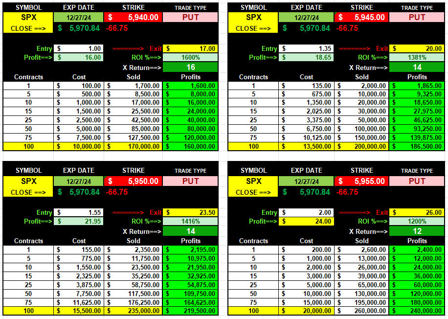 $1 Opening Formula - 5940 - 5955 PUT Multi Strike MOBY DICK ProfitsUP! as high as 16X ROI