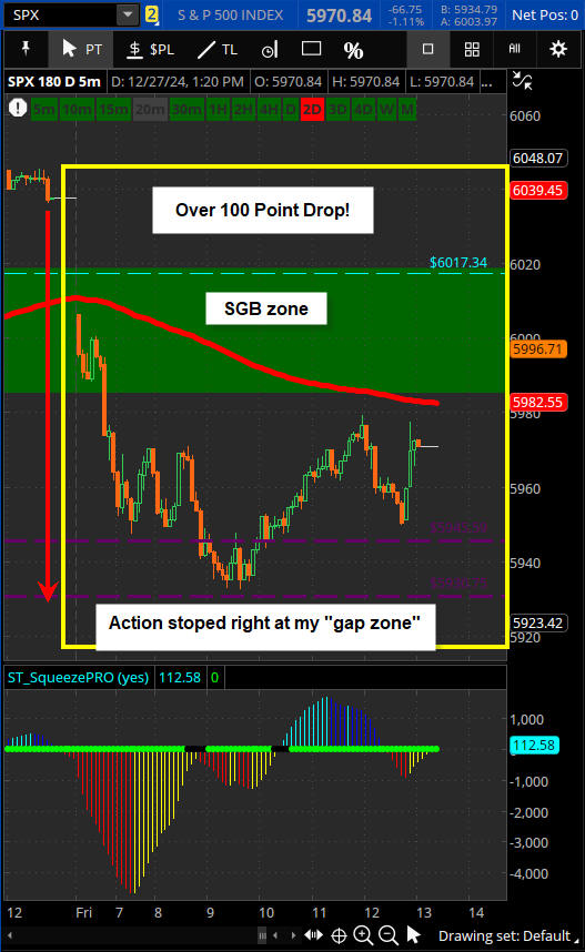 Today the SPX gapped down at the open and just kept on falling over 100 POINTS!!!!!