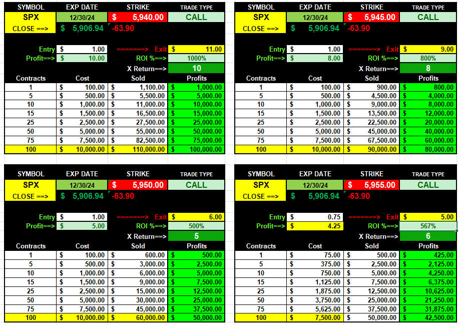 $1 Opening Formula - 5940 - 5955 CALLS Multi Strike MOBY DICK ProfitsUP! as high as 10X ROI