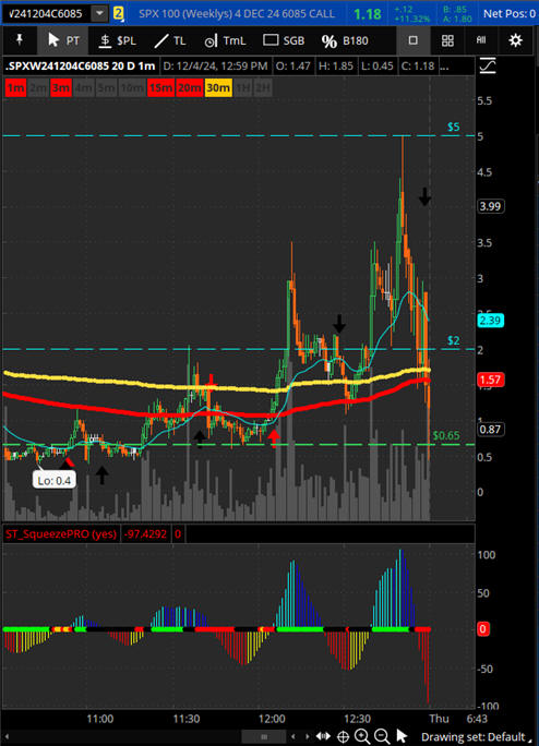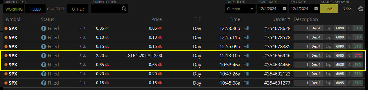 I had a order in to sell the 6085's for $4.90 but moved it to a stop and was immediately taken out. However, once you start to compound contracts you can layer exits to capture higher overall ROI—this was still a 330% winner!