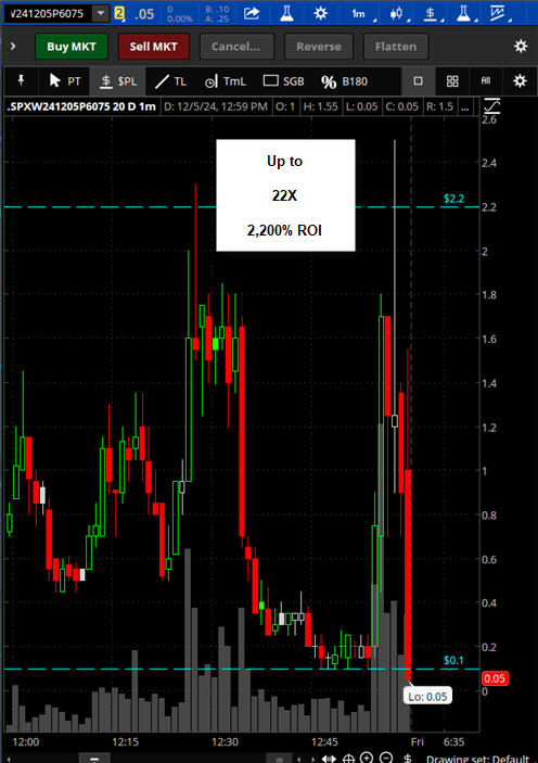 6075 PUT $0.10 to 2.2 up to 22X (1,400%) ROI! or ZERO if you did not take ProfitsUP!