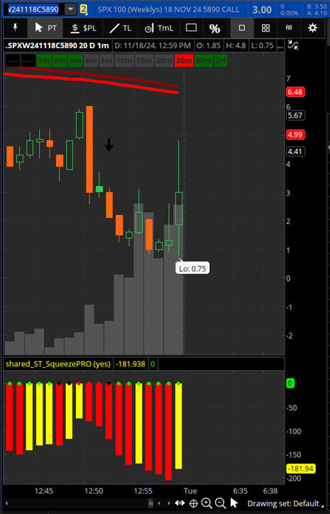 The neutral strike was already too low at 12:50 PM PST so I would have targeted the next lower stike and that one did not drop down to the max spend so no EOD trades today.
