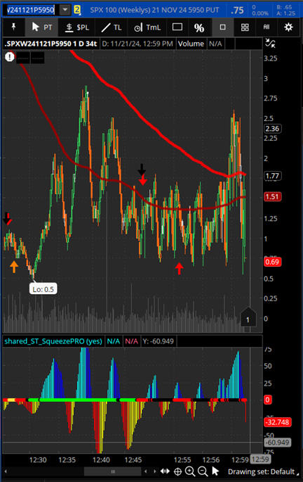 5955P was at the $1 opening formula price at 12:30 PM and then SPX sold off taking this strike to 600% ROI with a cash 6.29 settlement at too!