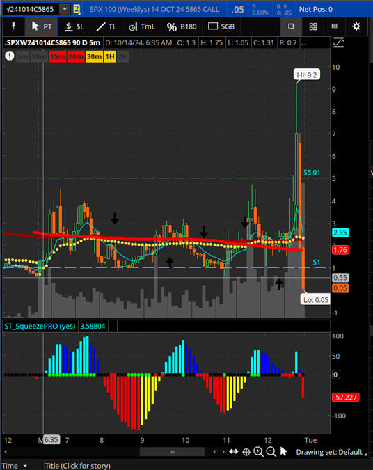 Today it was the 5865 PUT that won the close with a Cash Settlement too! Up to 700% ROI