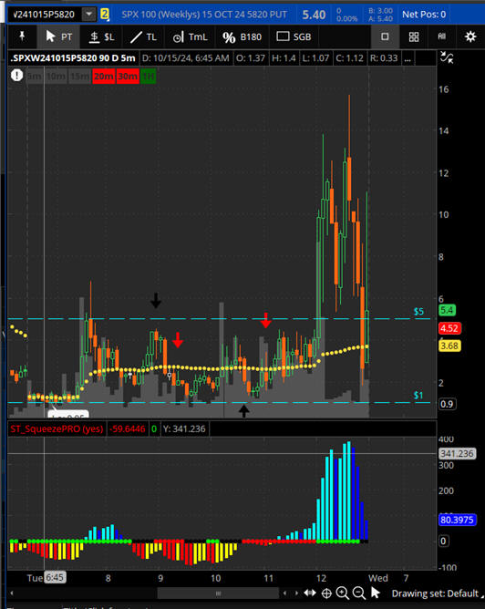 The $1.00 opening formula - 5820 PUT - surpassed the $5.00 target making up to 1,400% ROI today!