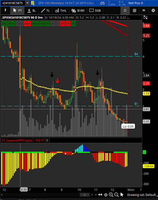 Today the 5865 CALL peaked at $1.80, but revered to zero if you did not take profits at 500% ROI...duh...TAKE ProfitsUP! with layered exits when compounding contract loads.