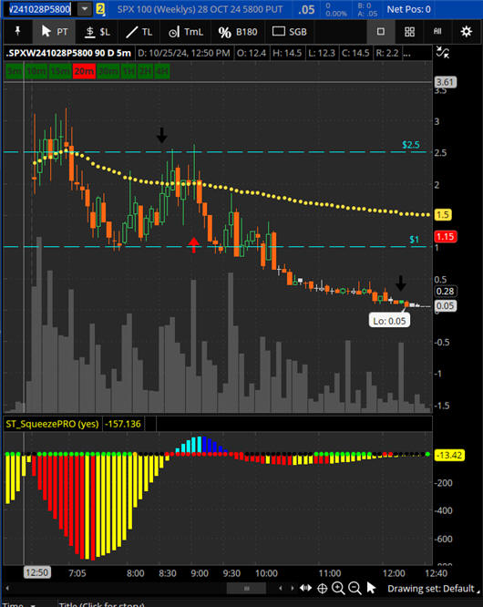 The $1.00 opening formula - 5800 PUT - Only made it to $3.00, so taking profits or a break even is good management.