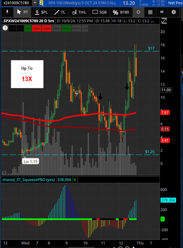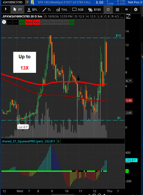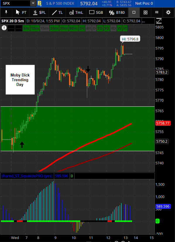 The $1.00 opening formula - 5780 AND 5785 CALLS both hit the $5.00 target and went Moby Dick today!