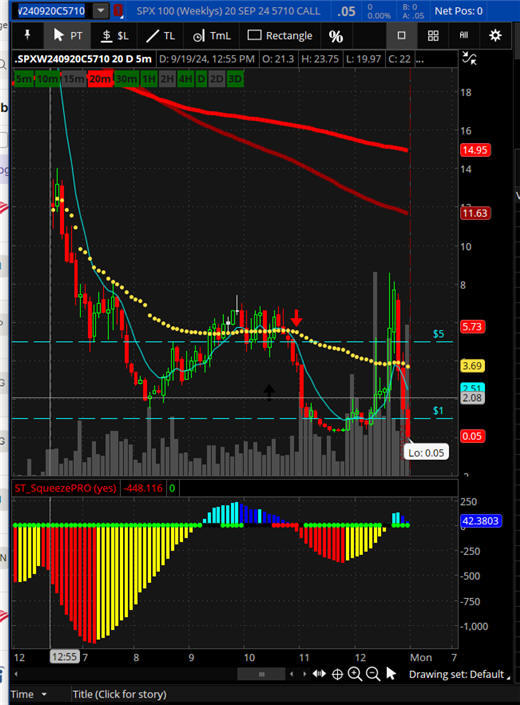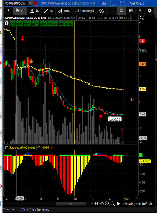 9-20-24 5705 PUTS did not drop to MAX spend of $0.65 so no trades for the EOD close.