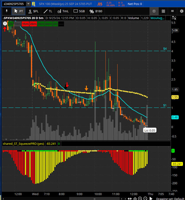 5705 P Made it to 4.00 then expired if no profits were taken or stopped out at break even.