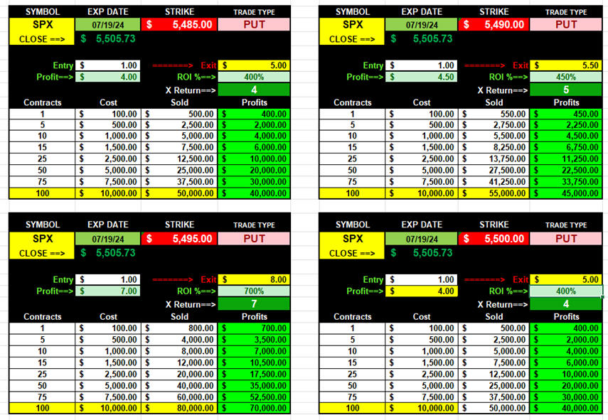 JUL 19, 2024 - 5505 CALL - Today the EOD Lotto Trade was a single strike small gain, but the Morning $1 Formula more than made up for this.