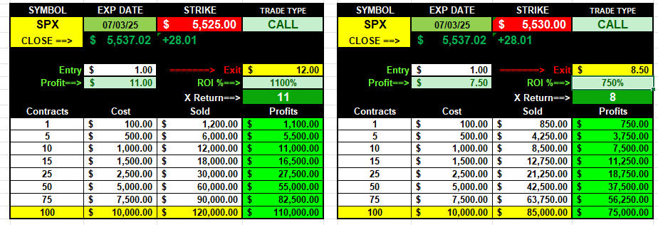 5530 CALL This strike met the SSX $1 opening formula and achieved up to 850% ROI!