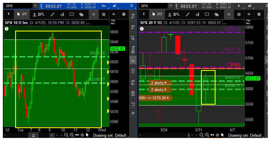 12:30 PM PST - Quant Pivot lines: Neutral =5605 - CLOSE - 5633.07 — +21.22 (Fibonacci and "33" close!)