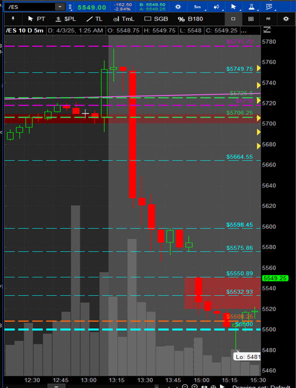 APR 2, 2025 SPX - Trump Tariff Meltdown Day FUTURES droppedover 800 points!