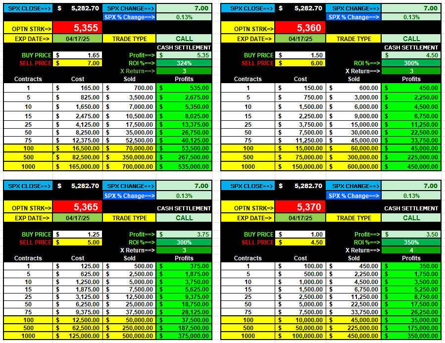 $1 Opening Formula strike range: CALL 5355 / PUT 5255