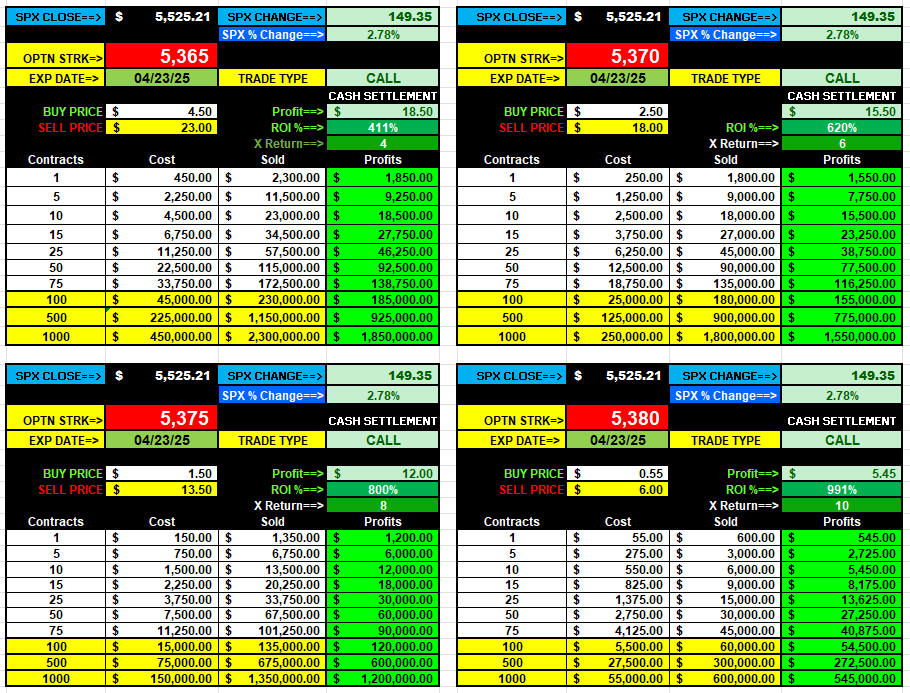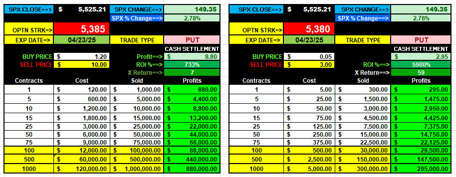 $1 Opening Formula target strikes were: CALL 5445 / PUT 5345