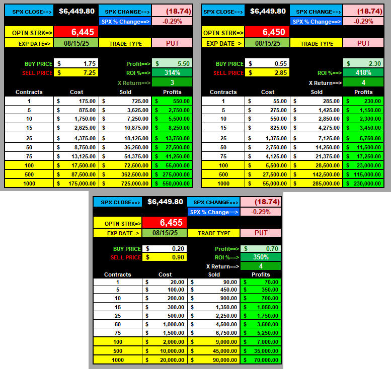 $1.00 Opening Formula Strike Ranges: CALLS 6525 / PUTS 6425