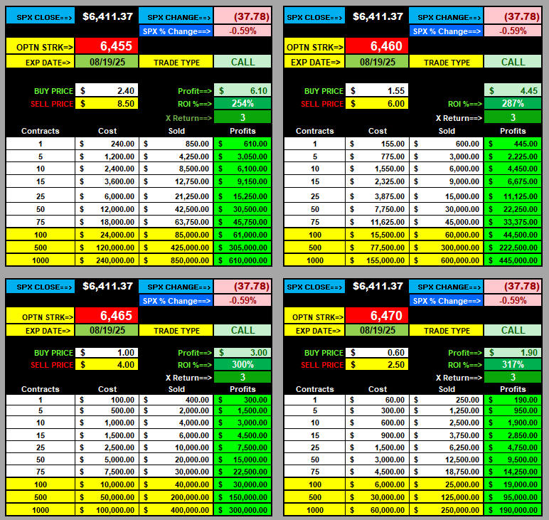 $1.00 Opening Formula Strike Ranges: CALLS 6495 / PUTS 6395