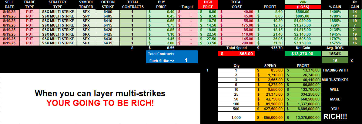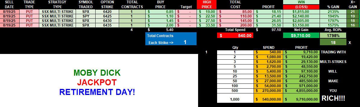 Moby Dick DoubleUP! day on the PUT strikes that fit the $1 Formula buy ranges: