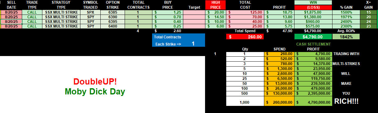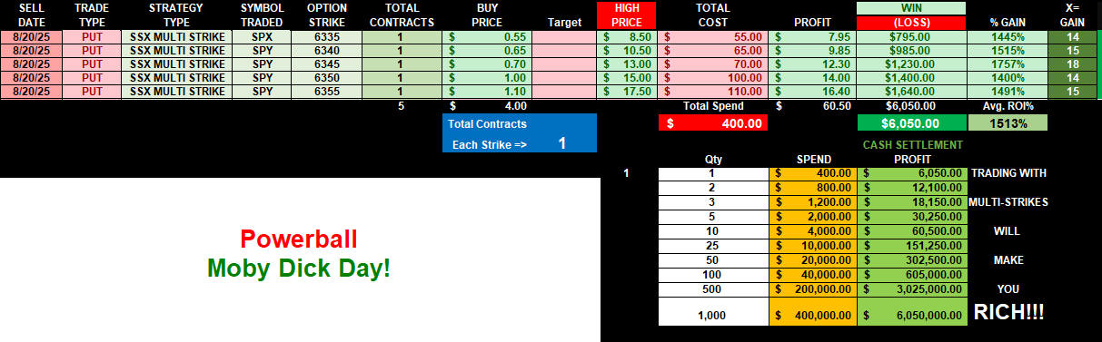 $1.00 Opening Formula Strike Ranges: CALLS 6455 / PUTS 6355