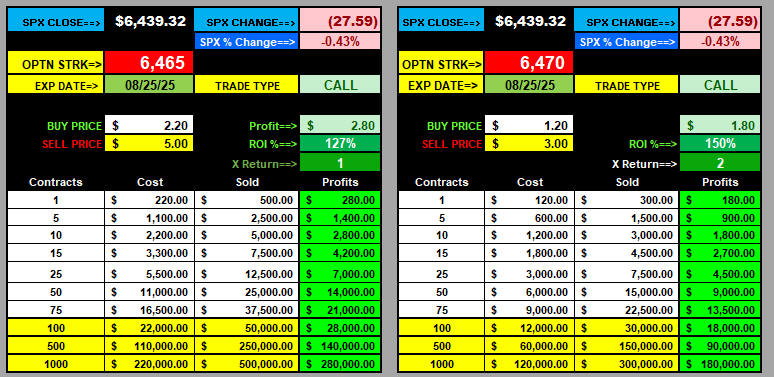$1.00 Opening Formula Strike Ranges: CALLS 6510 / PUTS 6410