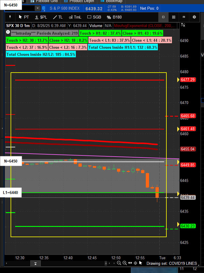 12:30 PM PST - Quant Pivot lines: Neutral = 6450 L1= 6440 — CLOSE - 6439.32 (-27.59 -0.43%)