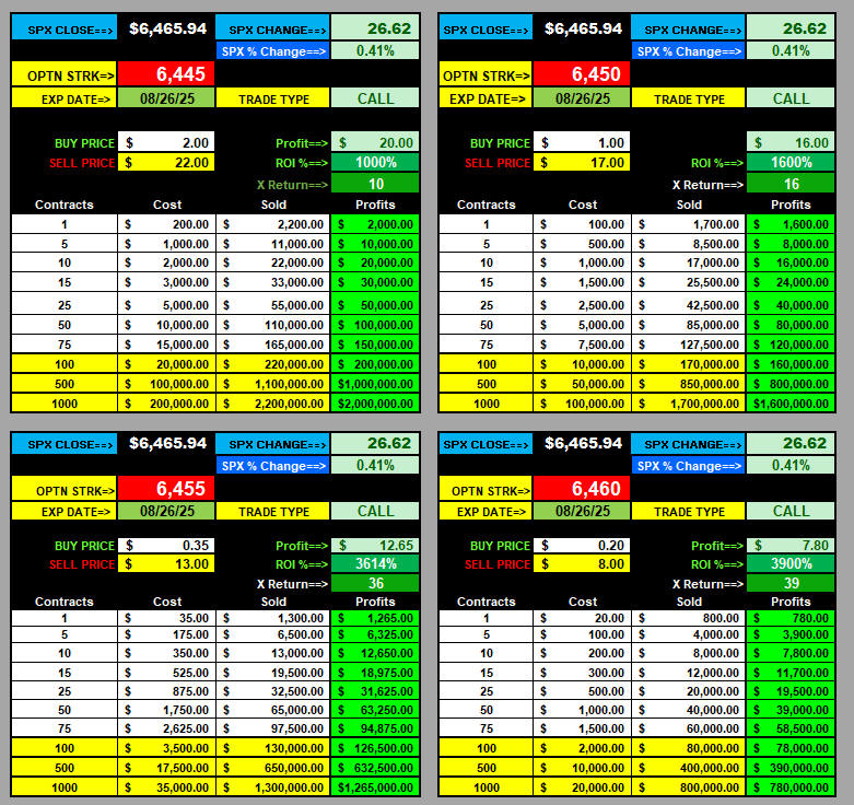 $1.00 Opening Formula Strike Ranges: CALLS 6485 / PUTS 6385