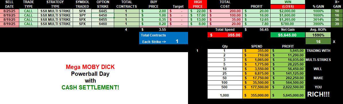 Today, Jackpot Moby Dick close with cash settlement...layers killed it again today!!