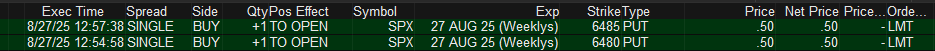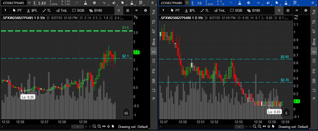 My EOD Lotto Trades: I was unable to layer in this account becuase it is not a PDT yet, so I bought the 80 and 85's