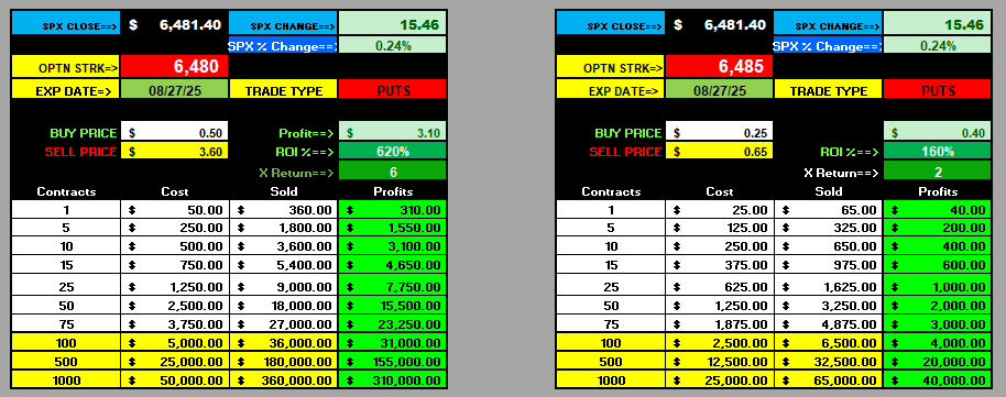 $1.00 Opening Formula Strike Ranges: CALLS 6510 / PUTS 6410