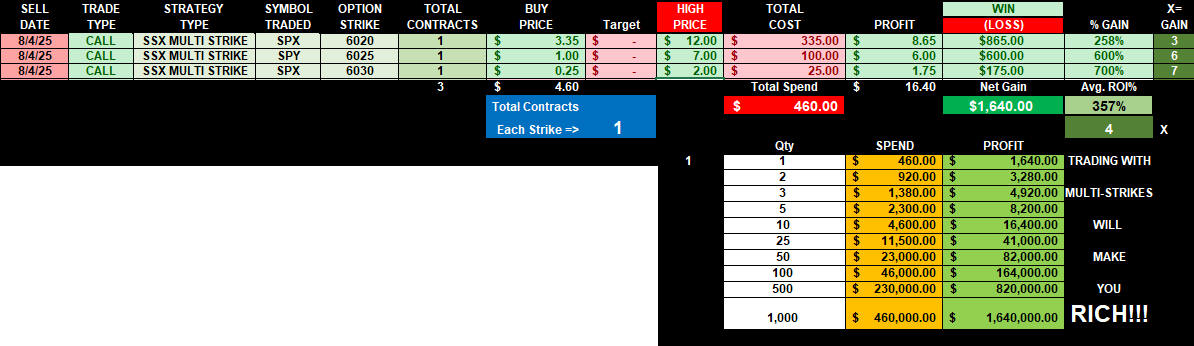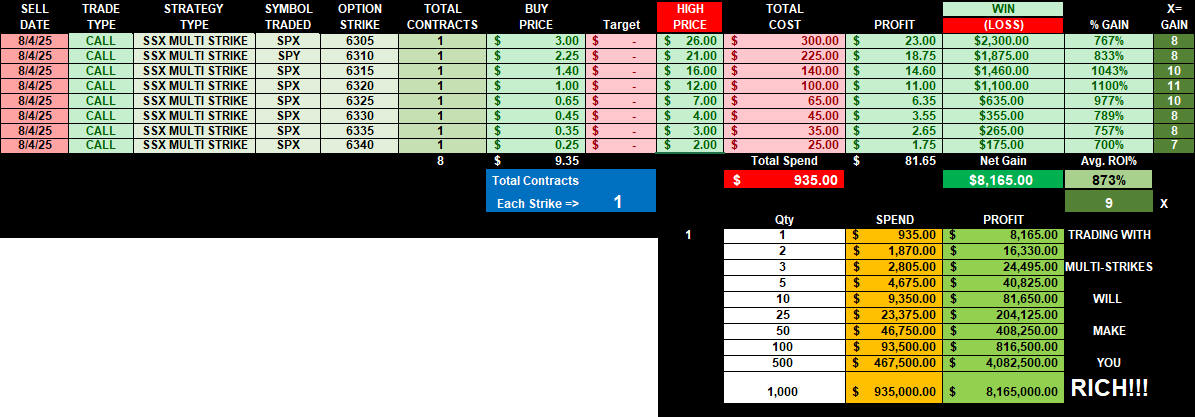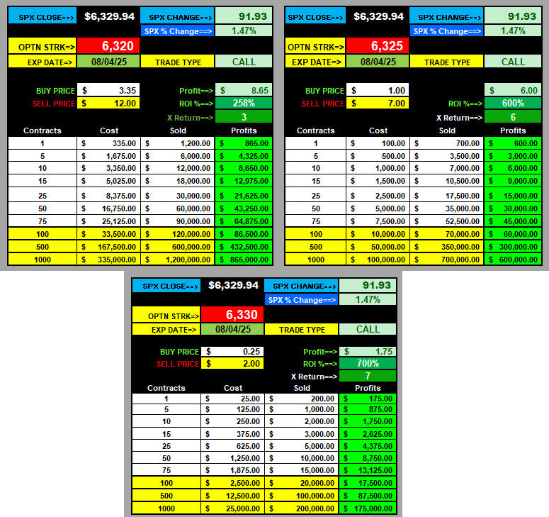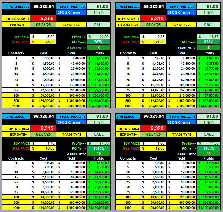 $1.00 Opening Formula Strike Ranges: CALLS 6320 / PUTS 6220