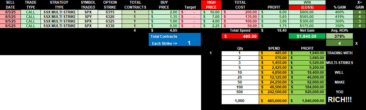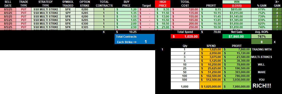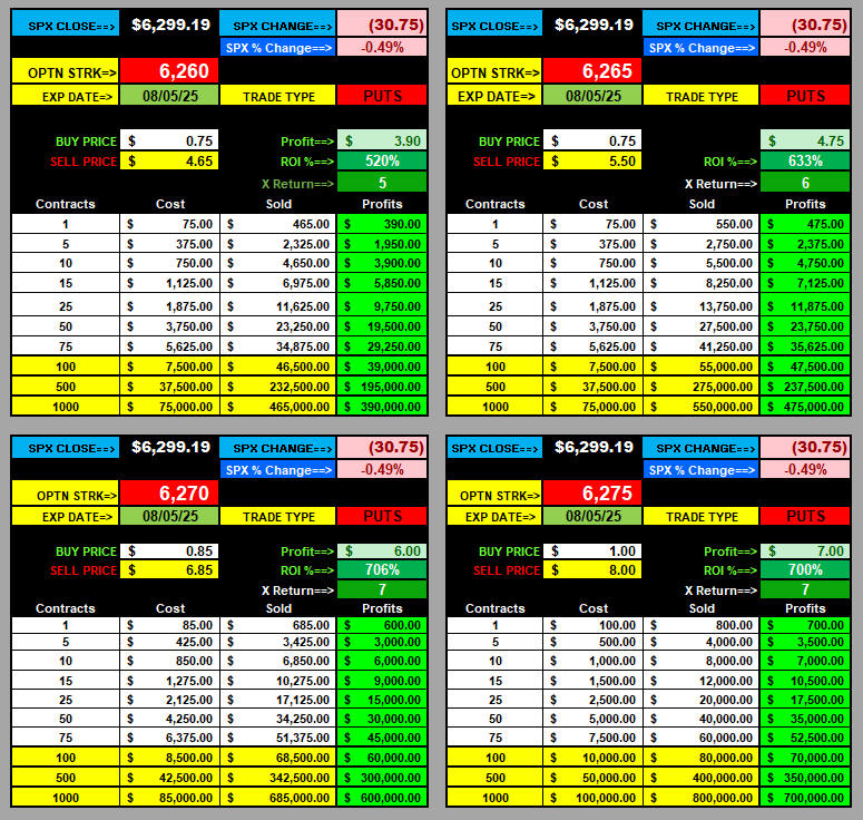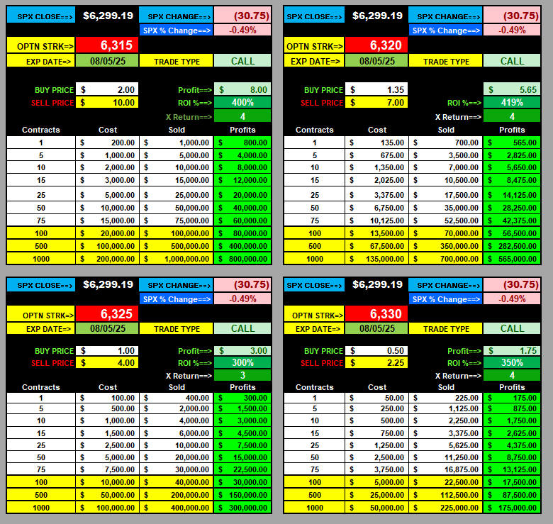 $1.00 Opening Formula Strike Ranges: CALLS 6320 / PUTS 6220