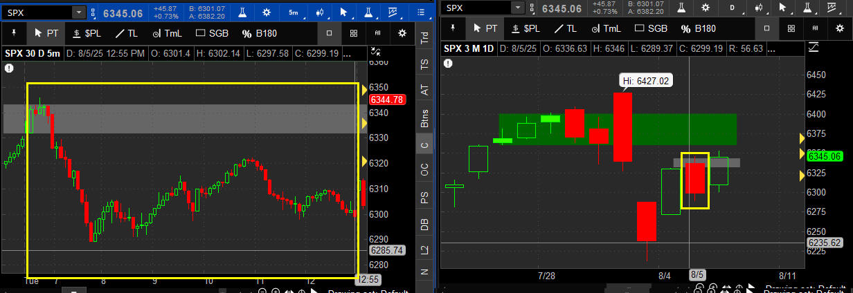 Today, the QP Neutral was way out of range, but the "whole" number 6300 PUT made some quick money with layers